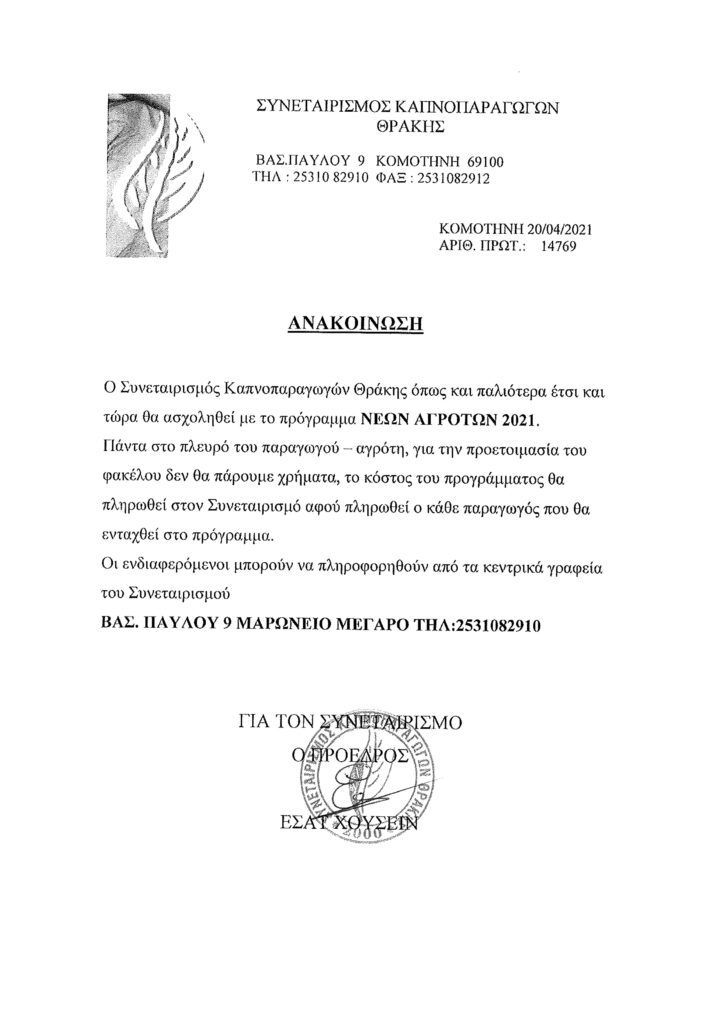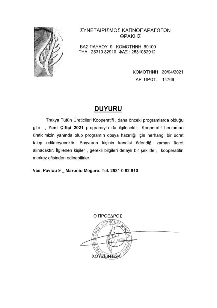 Yunanistan İstatistik Kurumu 2021 yılı Tarım ve Hayvan Besiciliği alanlarındaki sayımınlarına Başladı